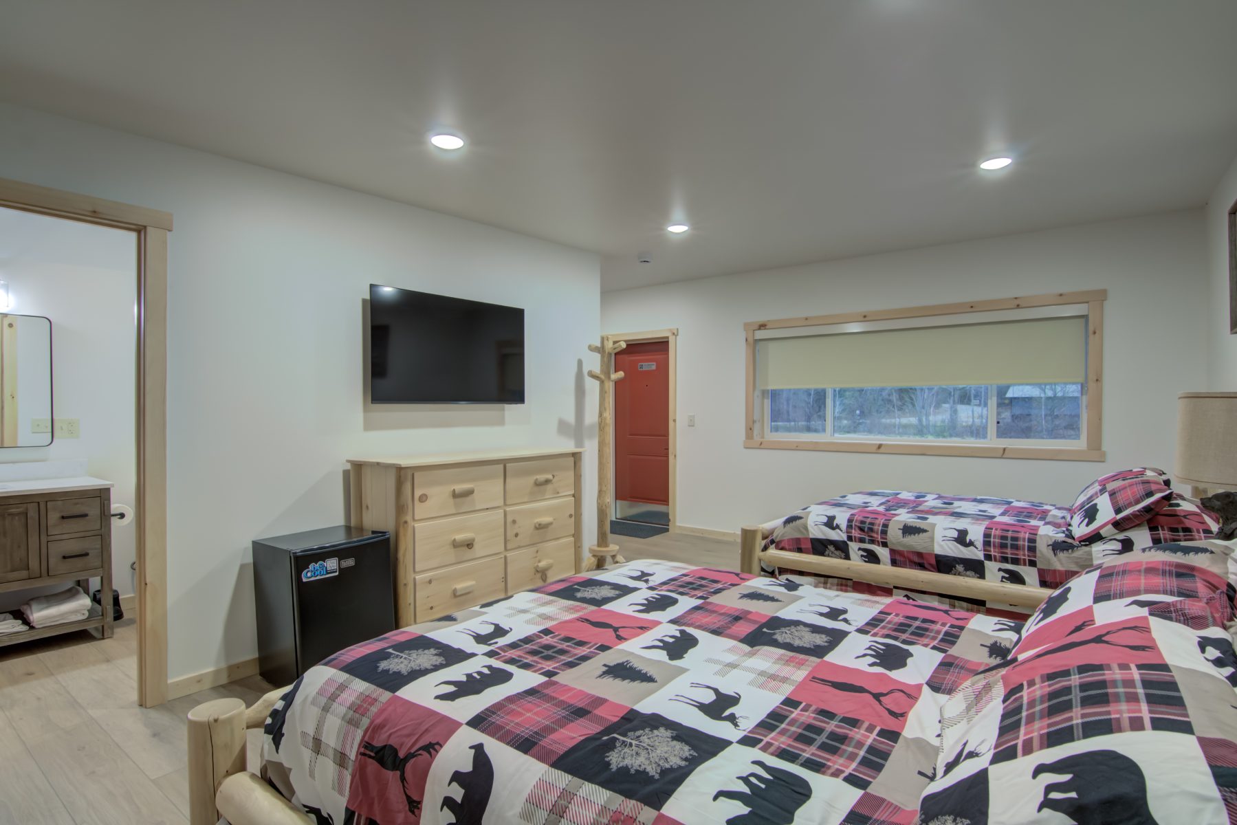 Our newly-remodeled motel offers a clean, comfortable, and convenient place to stay for travelers looking to explore the beauty and adventure of the Northwoods. You’ll enjoy comfortable log-style furnishings, smart TVs, private outdoor patios, reliable WiFi, and easy access to all the area has to offer. Book your room today, and experience a retreat with ample Northwoods charm!